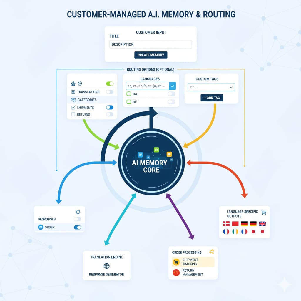 The core innovation is our Memory Routing engine. Instead of a blanket application, you can tag each piece of memory with functional and linguistic constraints. A memory about DACH shipping regulations will *only* be presented to the AI when a user is speaking German (de) and asking about a Shipment. This is true precision.